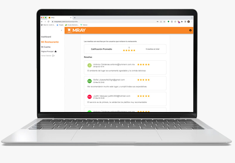 What do your guests think of your restaurant? MRay offers you the perfect mix, your guests will be able to consult not only the photograph of each dish, but they will also be able to leave their reviews of your restaurant, dishes and service, which makes it a winning mix to achieve the satisfaction of each guest, remember that love is born at first sight, it is inevitable that your guests will leave happy and satisfied from your restaurant and willing to recommend you.